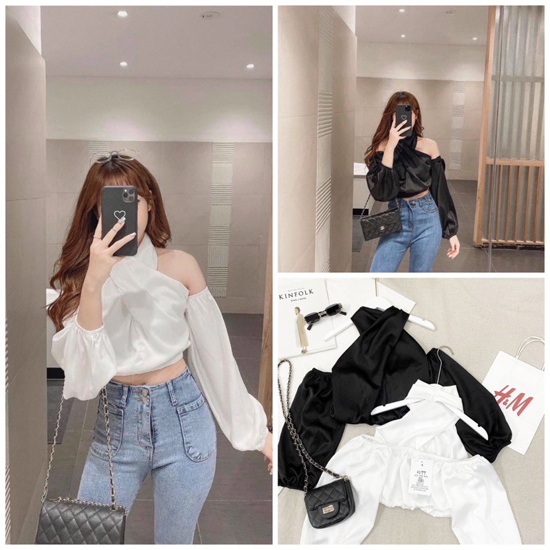 ÁO CROP XOẮN RỚT VAI 2M 🖤🤍🤍🖤
