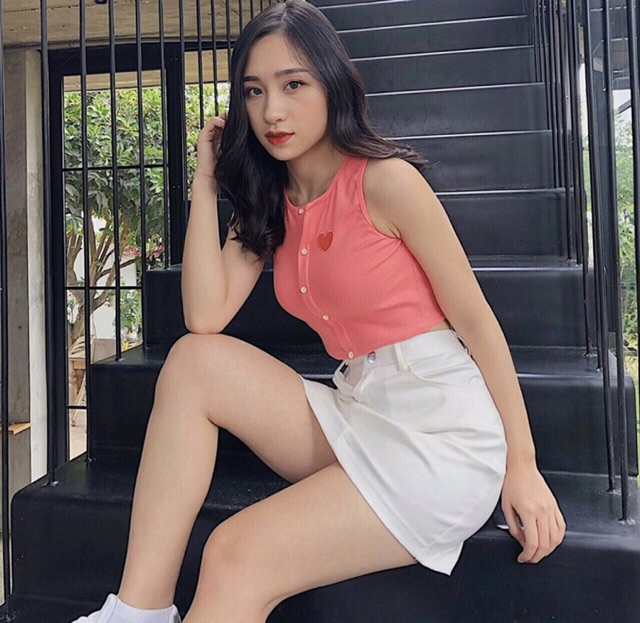 Giới thiệu Áo croptop cài nút không tay thêu tim phong cách xứ sở Kim Chi