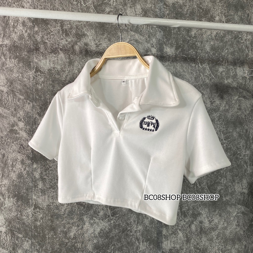 THÔNG TIN SẢN PHẨM: Áo Croptop Cổ Bẻ Thêu Chữ Hàn Quốc Phong Dễ Thương 2 màu Đen Trắng