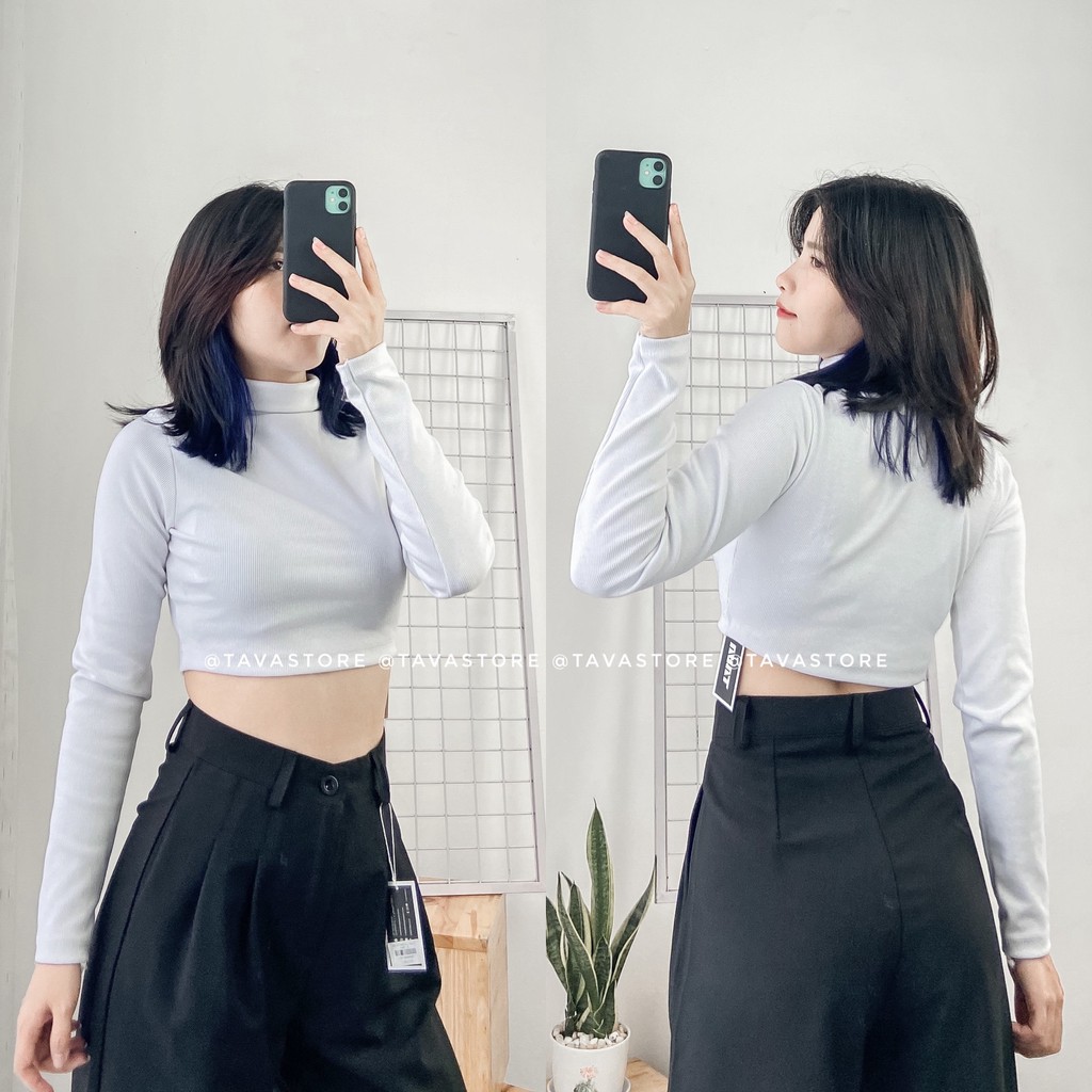Croptop cổ lọ, basic diện từ năm nay qua năm khác không sợ lỗi mốt. Gân dày dặn mịn đẹp.