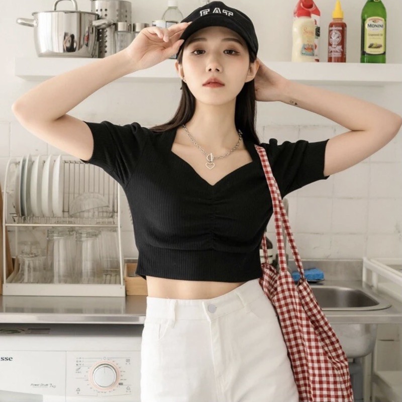 - Tên Sản Phẩm: Áo Croptop Cổ Vuông Nhún ngực