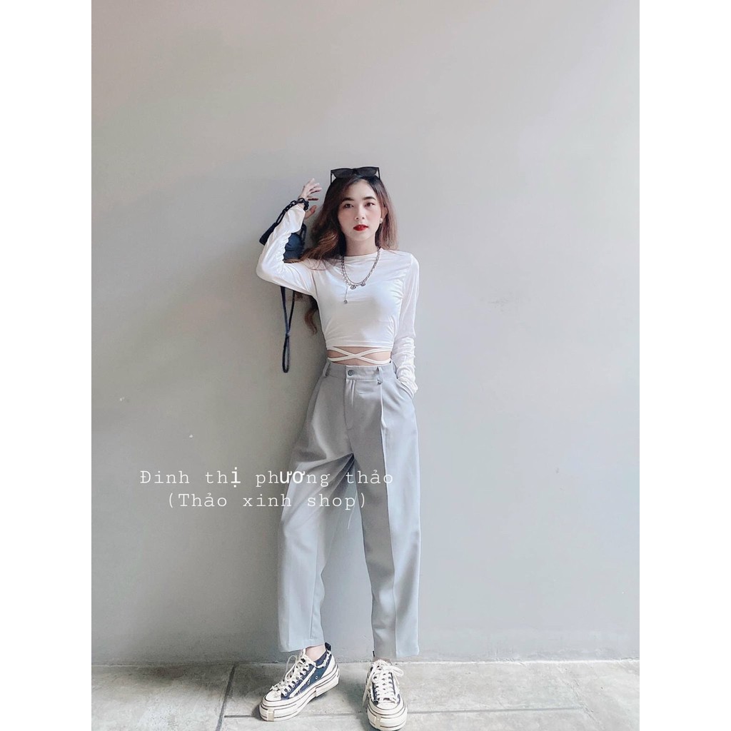 Giới thiệu Áo croptop cột dây chéo bụng tay tài