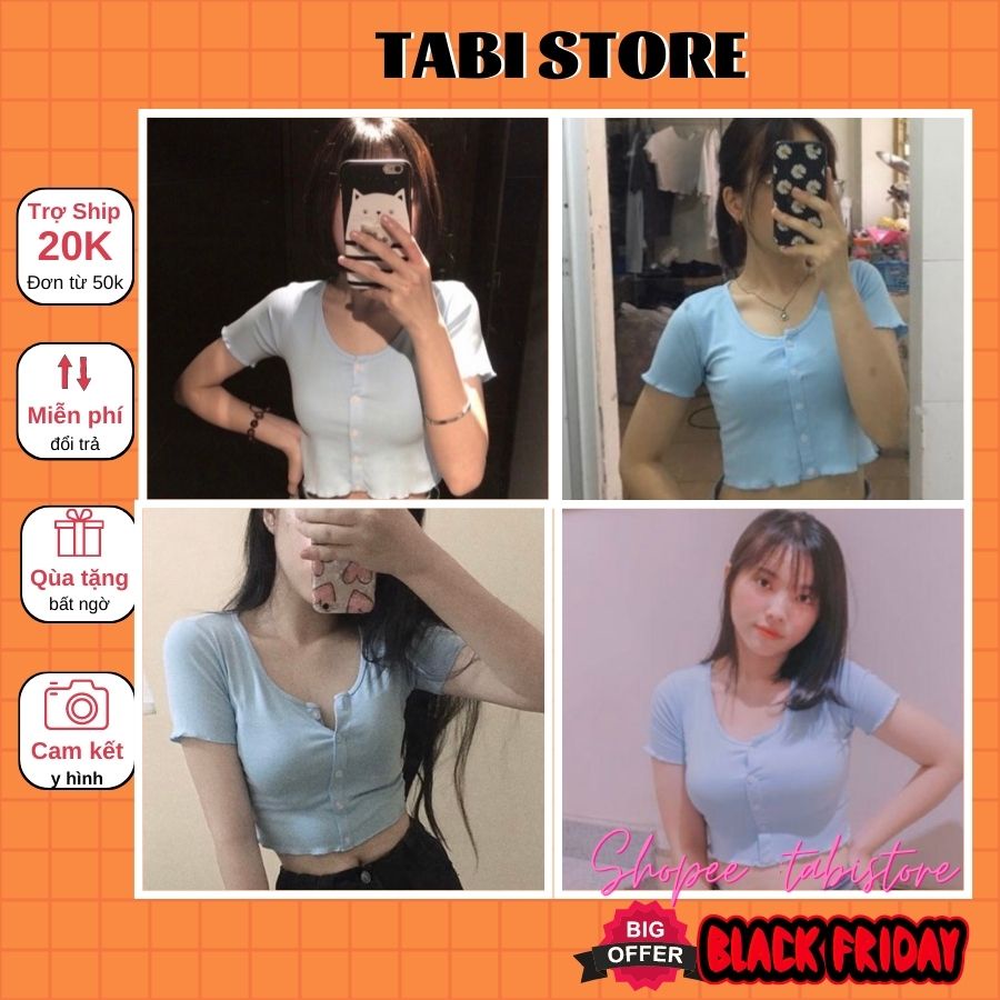 Giới thiệu Áo croptop cúc dọc xanh baby - Croptop 5 cúc bozip màu xanh