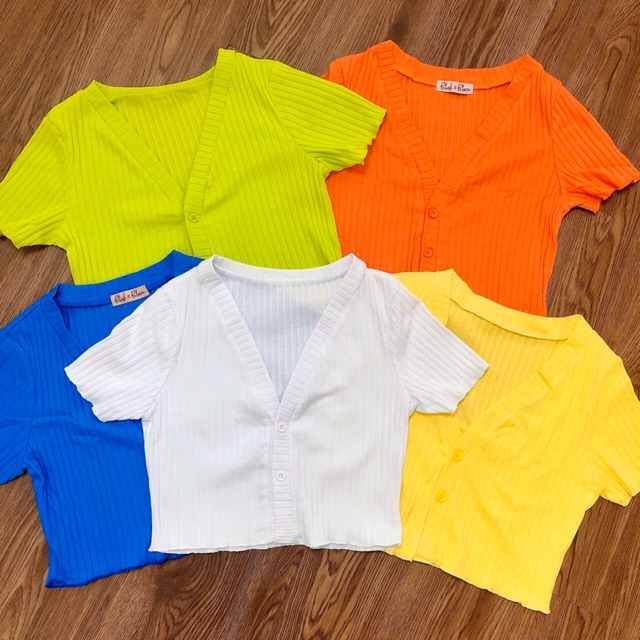 Áo croptop cuộn biên phối nút