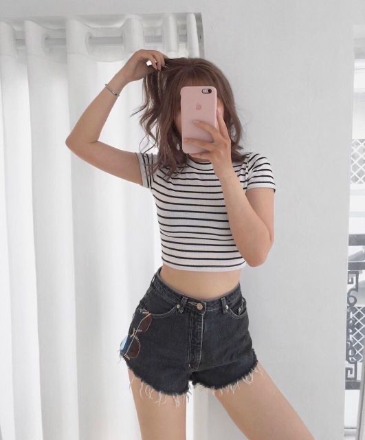 Thời Trang Nữ > Áo > Áo sơ mi || ÁO CROPTOP KẺ SỌC