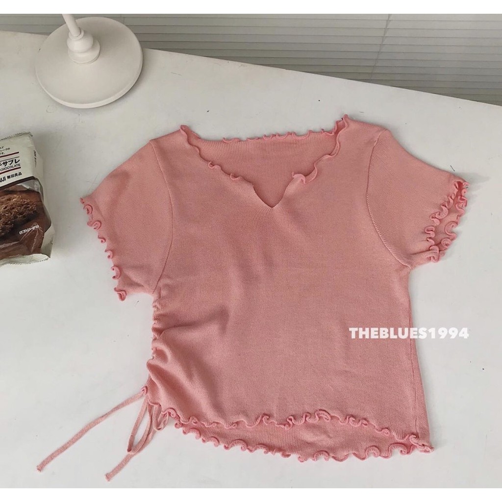 Thời Trang Nữ > Áo > Áo sơ mi || áo croptop kiểu cổ xẻ v rút dây hông