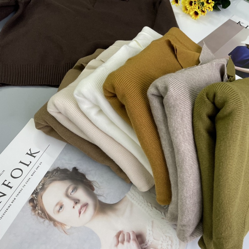 Áo croptop dài tay len tăm cổ polo chất liệu dệt kim cao cấp