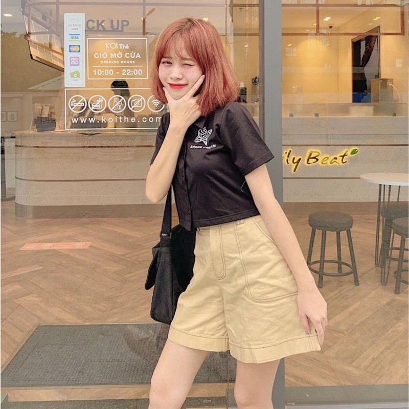 Thời Trang Nữ > Áo > Áo sơ mi || Áo croptop nữ cổ bẻ tay ngắn thêu (đen/trắng)