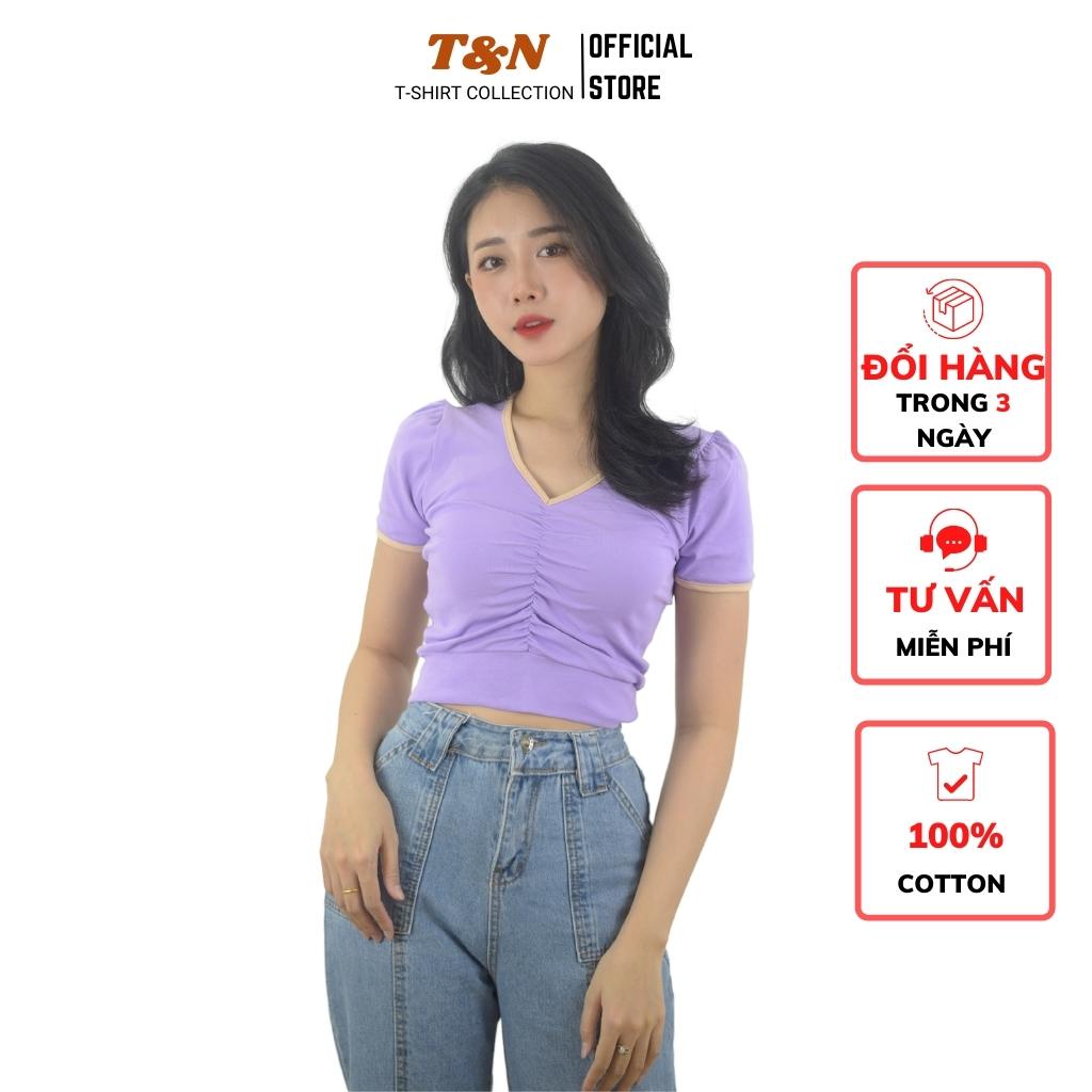 Giới thiệu Áo croptop nữ cổ chữ V form ôm body T&N TSHIRT COLLECTION, 9 màu năng động trẻ trung, vải thun Borip Cotton 100% A26150