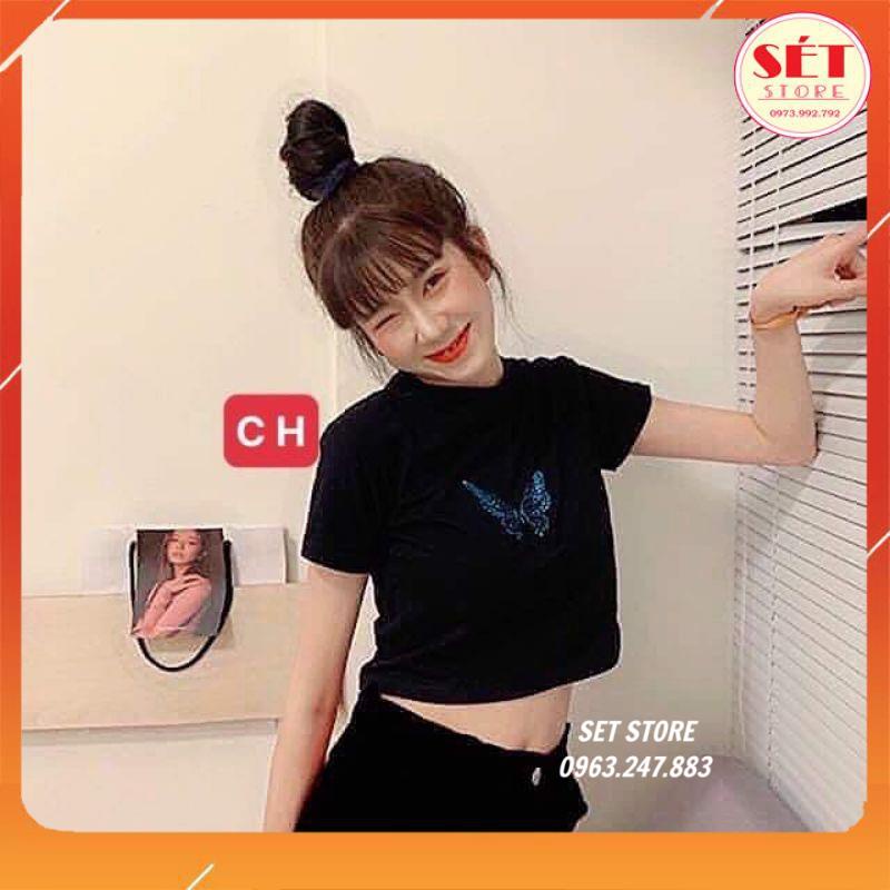 Thời Trang Nữ > Áo > Áo sơ mi || Áo croptop nữ dáng ôm in hình cute,2 màu Đen,Trắng - CT132