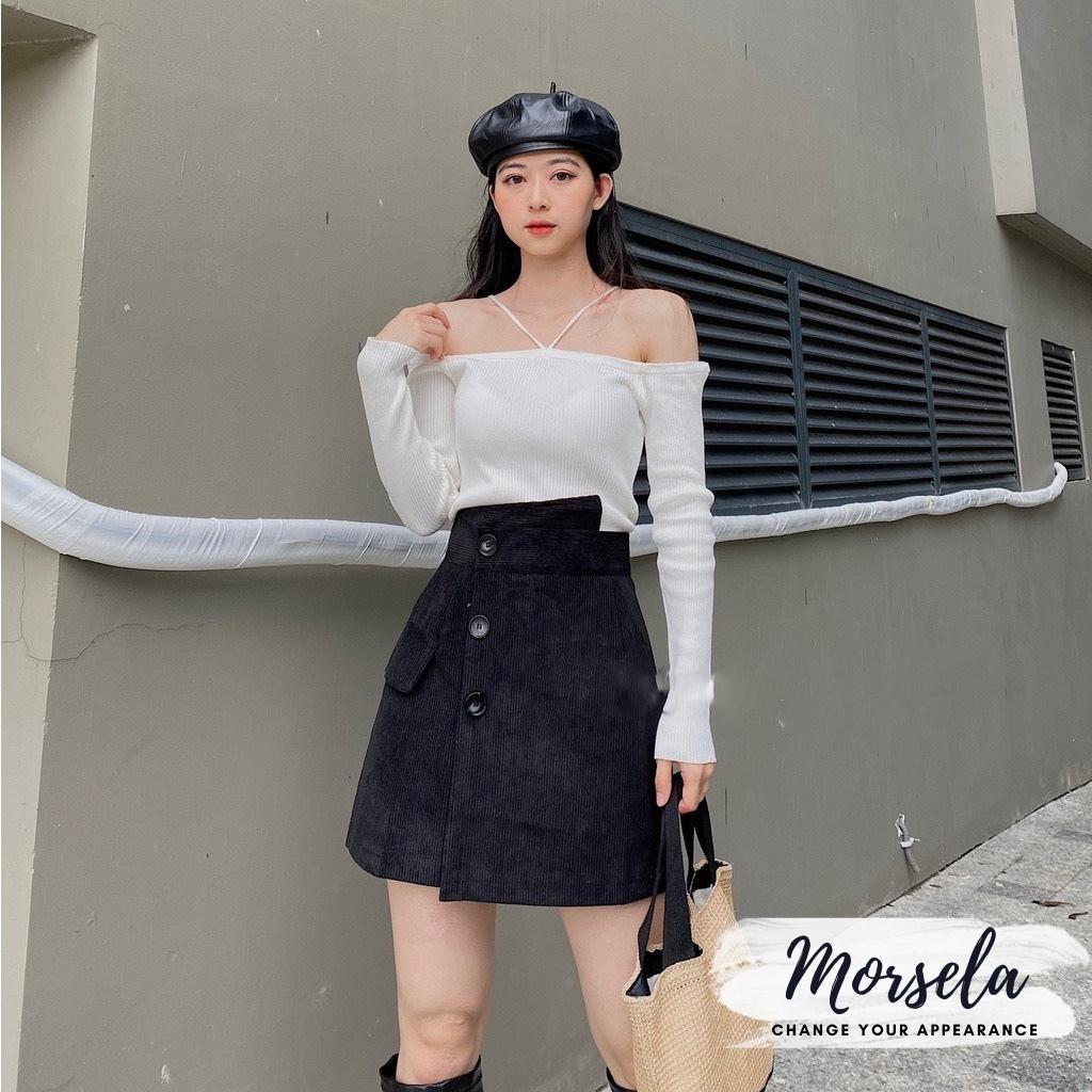 Giới thiệu Áo croptop nữ ôm body dài tay trễ vai cột dây cổ yếm - Morsela