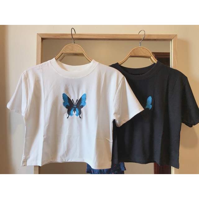 Thời Trang Nữ > Áo > Áo thun || Áo Croptop Nữ Thêu Hình Con Bướm - Áo Thun Ngắn Nữ Cộc Tay 2 Màu
