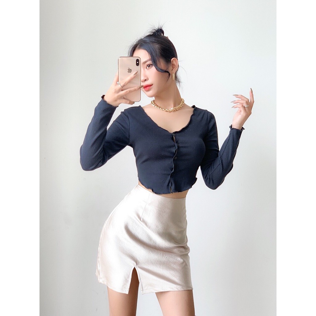 Giới thiệu Áo croptop nữ thun tay dài ôm body KRYSTAL NK44