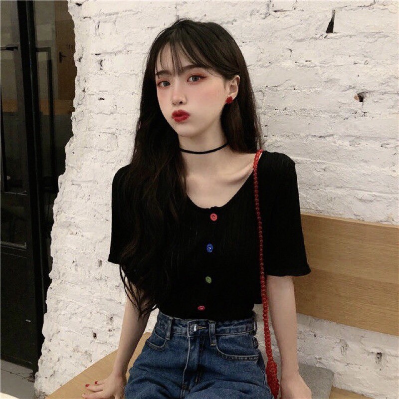 🔥 Áo Croptop trơn body phối cúc cầu vồng