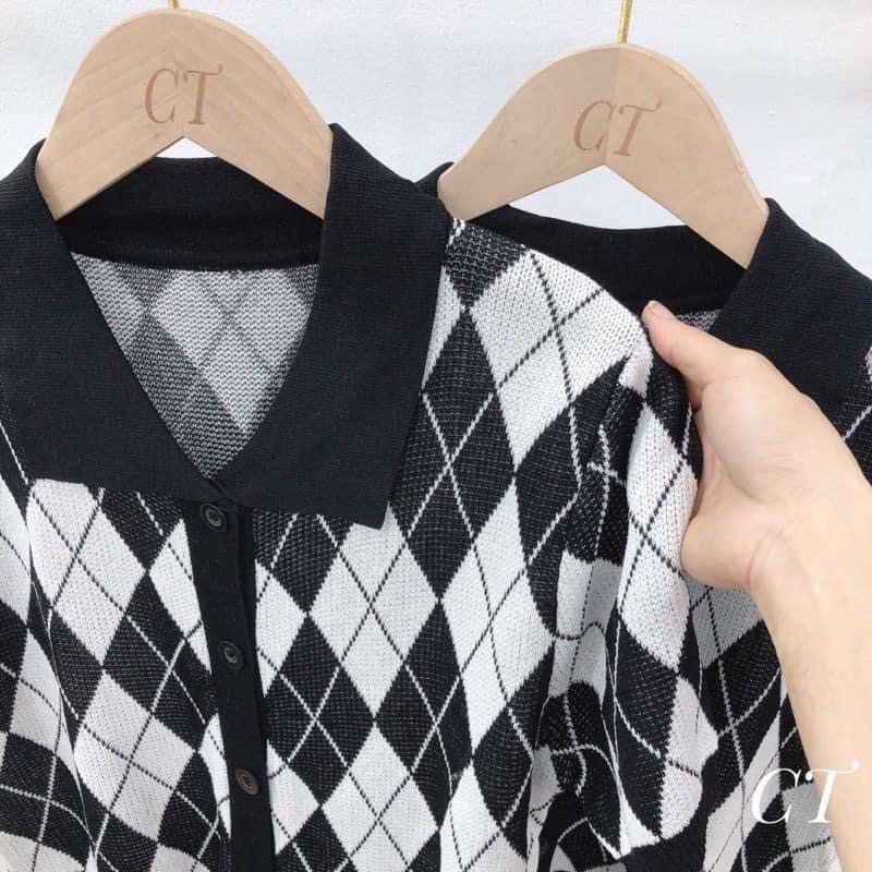 Áo hoạ tiết kẻ caro (hình quả trám) màu đen-xám