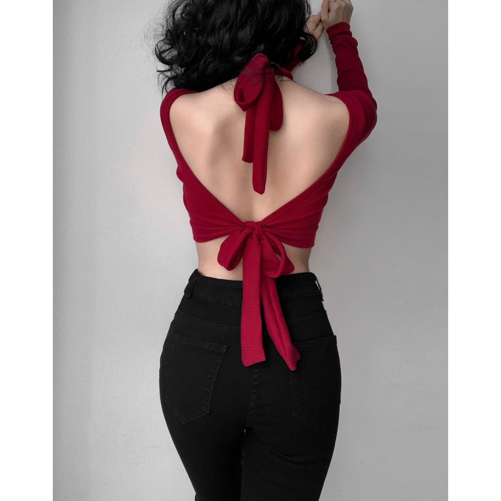 Thời Trang Nữ > Áo > Khác || Áo croptop tay dài hở lưng buộc dây /Code A0505
