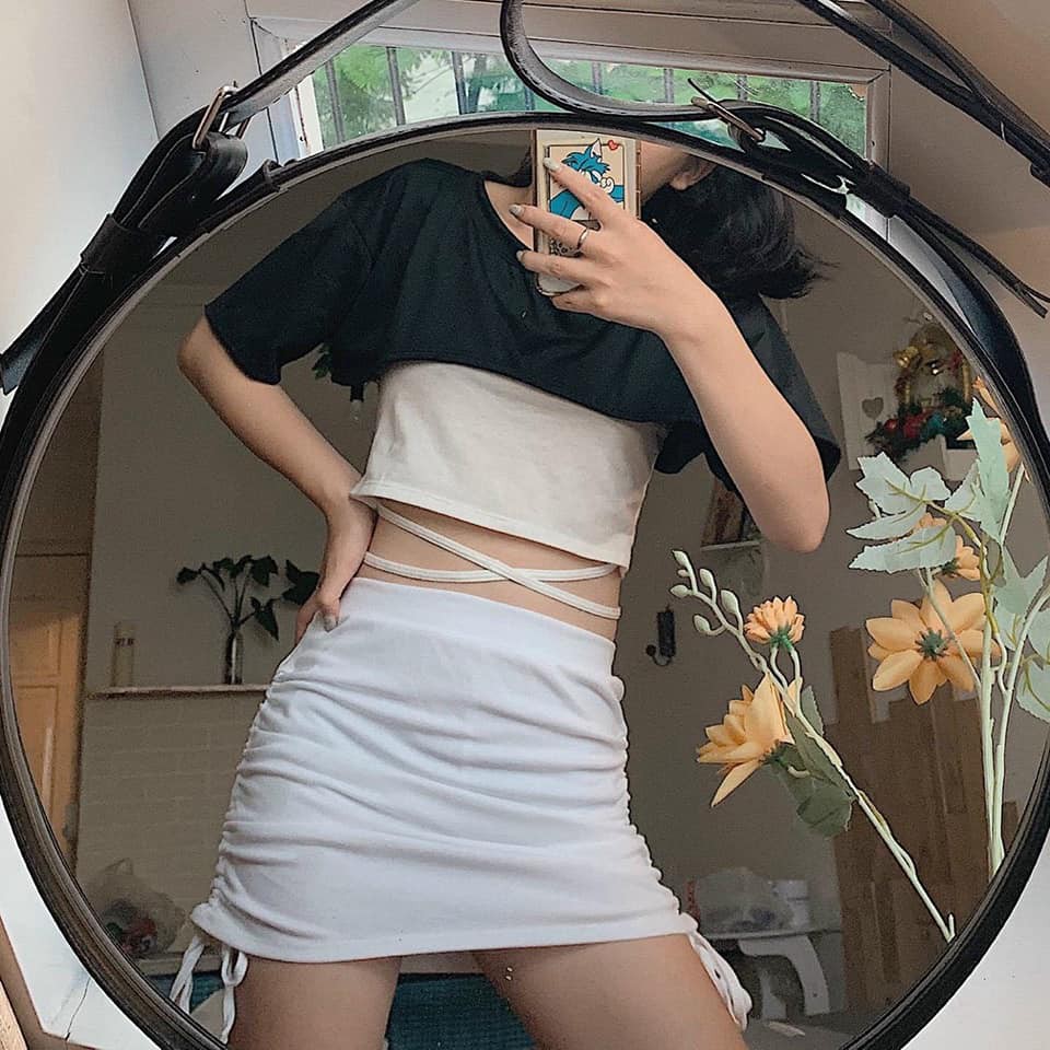Tên sản phẩm : ÁO croptop tay ngắn kèm áo cột dây eo