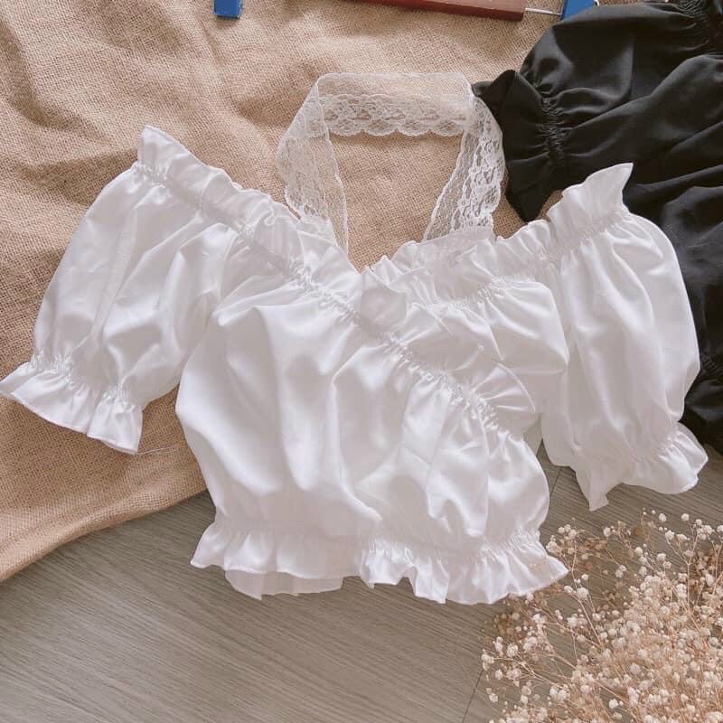 Giới thiệu Áo Croptop Tay Ngắn Phối Ren Cổ C033 Cho Nữ Xinh Xắn Dễ Thương