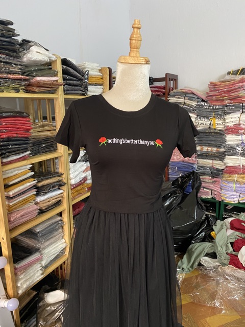 Giới thiệu Áo croptop thun lụa thêu chữ siêu xinh