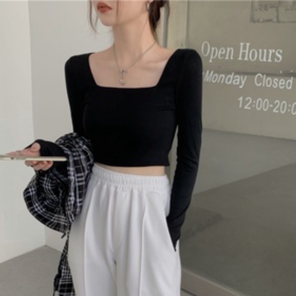 Giới thiệu Áo thun croptop nữ cổ vuông tay dài ôm body 100% Cotton, áo croptop dài tay nữ cổ vuông nhiều màu-ACTDT01