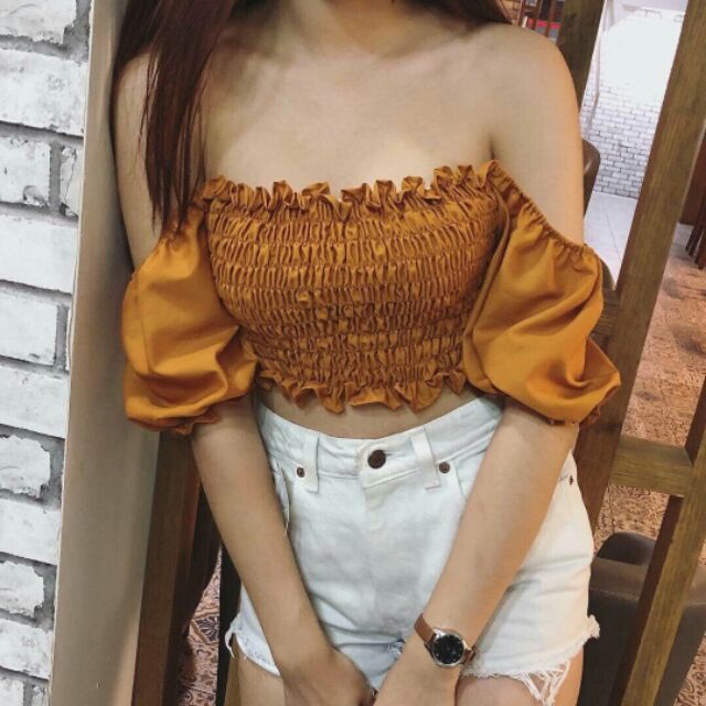 ÁO CROPTOP TRỄ VAI NHÚN CHỈ_ÁO KIỂU TRỄ VAI