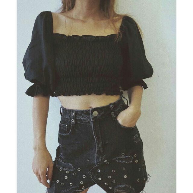 Thời Trang Nữ > Áo > Áo sơ mi || ÁO CROPTOP TRỄ VAI NHÚN CHỈ_ÁO KIỂU TRỄ VAI
