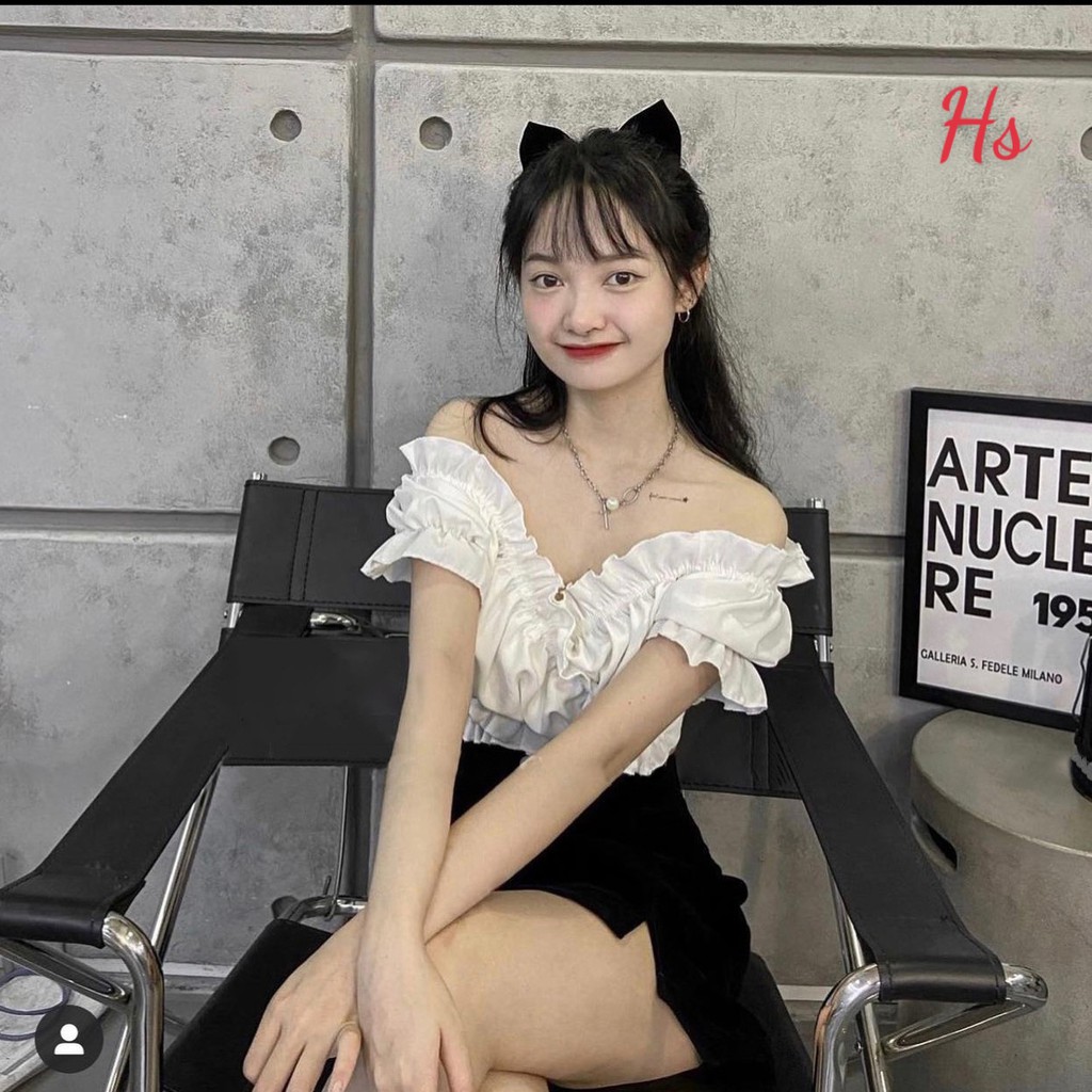 Áo croptop viền bèo đũi chéo ngực gợi cảm Hương Su