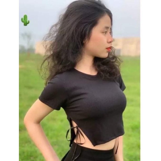 Áo croptop xẻ tà cột dây 2 bên( kèm video)
