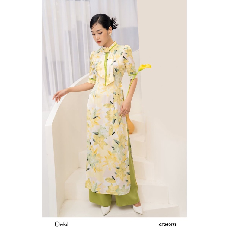 Giới thiệu Áo Dài cách tân tay lỡ,chất Lụa Họa Tiết Xanh cao cấp - Orchid CT26O171