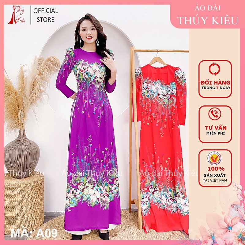 Giới thiệu Áo dài cách tân thiết kế nữ truyền thống tết may sẵn nền tím tay bồng A09 mềm mại, co giãn, áo dài giá rẻ