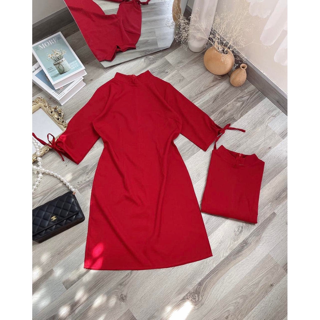 S140💚 ÁO DÀI ĐỎ TAY NƠ💚