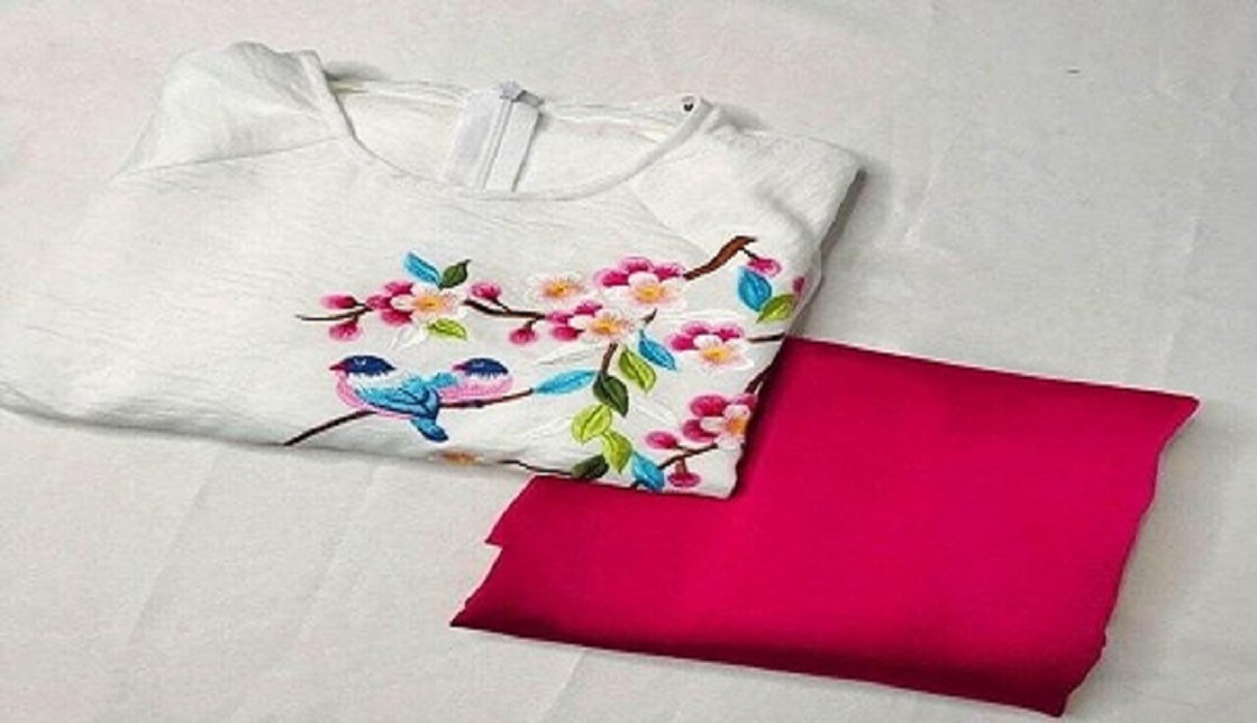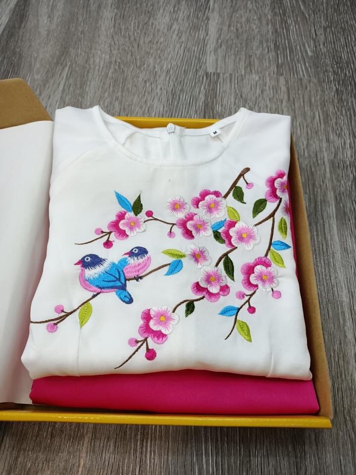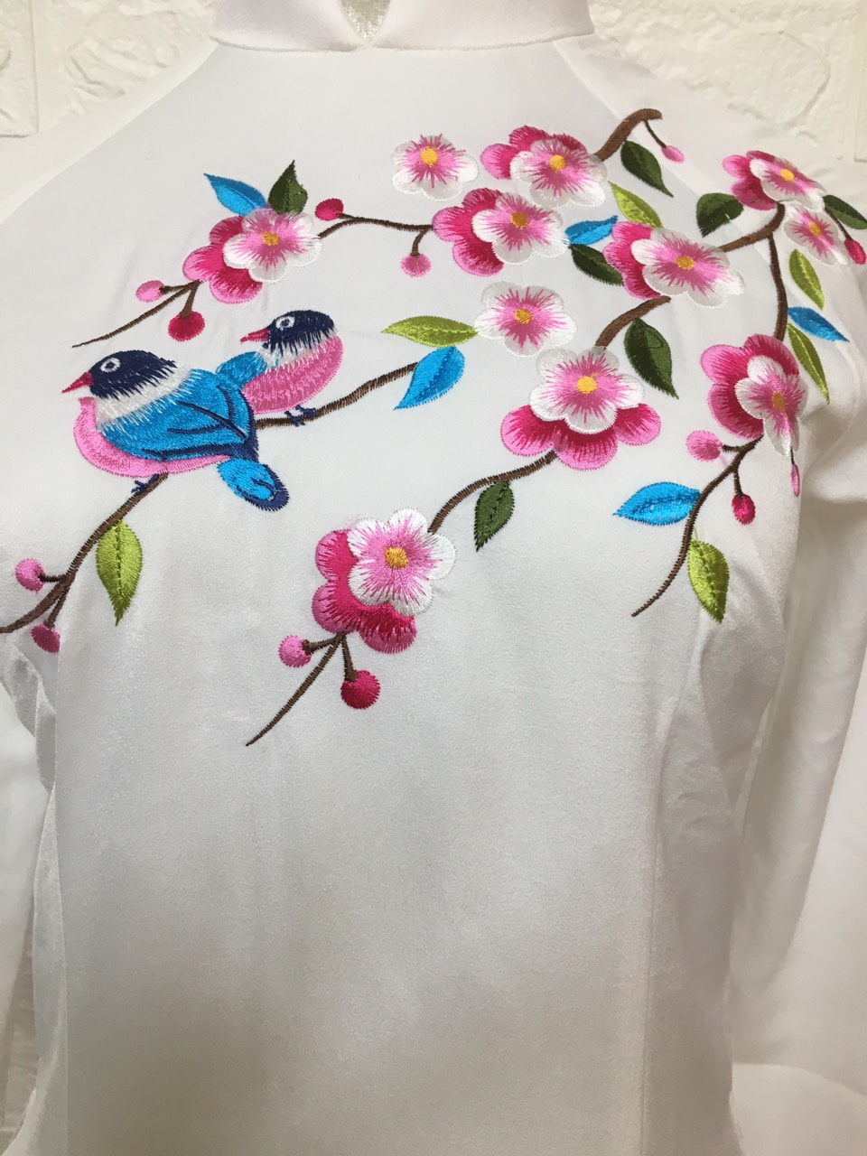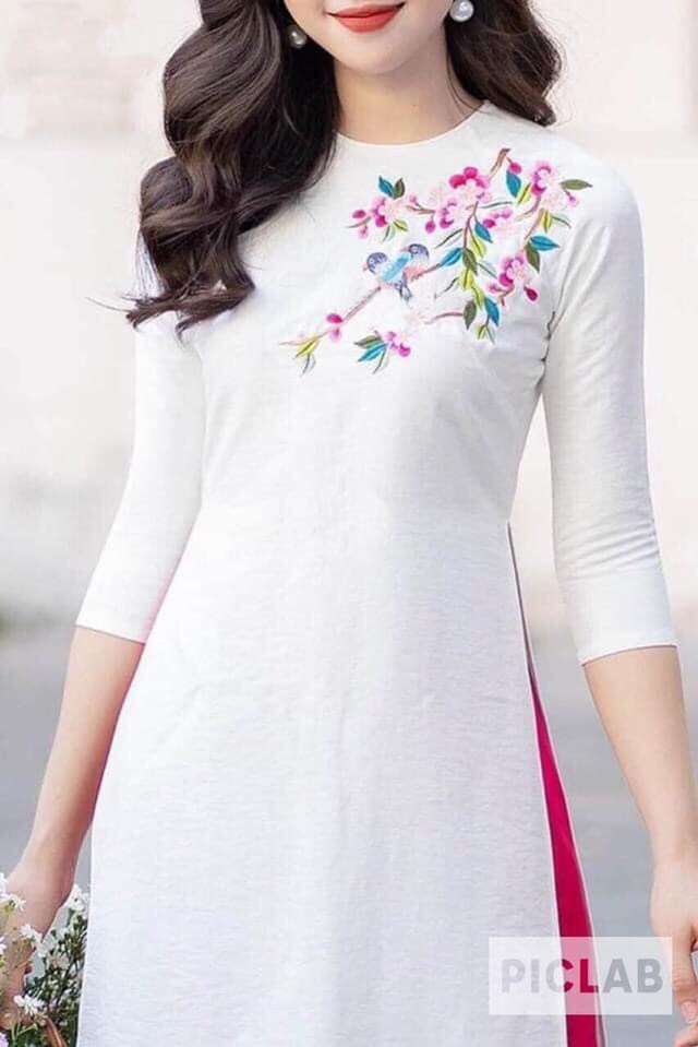 + 1 áo dài trắng thêu lắc tay hoạ tiết hoa lá tinh tế , sắc sảo