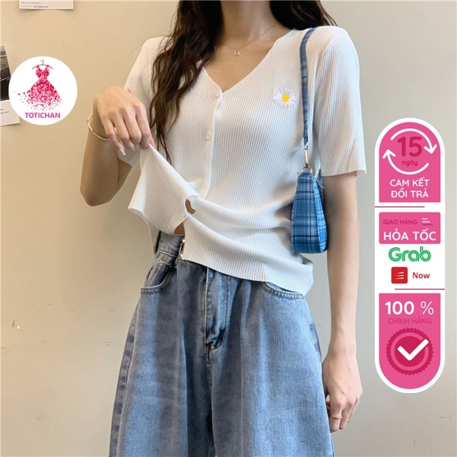 Giới thiệu Áo Dệt Kim Cổ Chữ V Thêu Hoa Cúc Xinh Xắn Kiểu Hàn Quốc TOTICHAN AT10