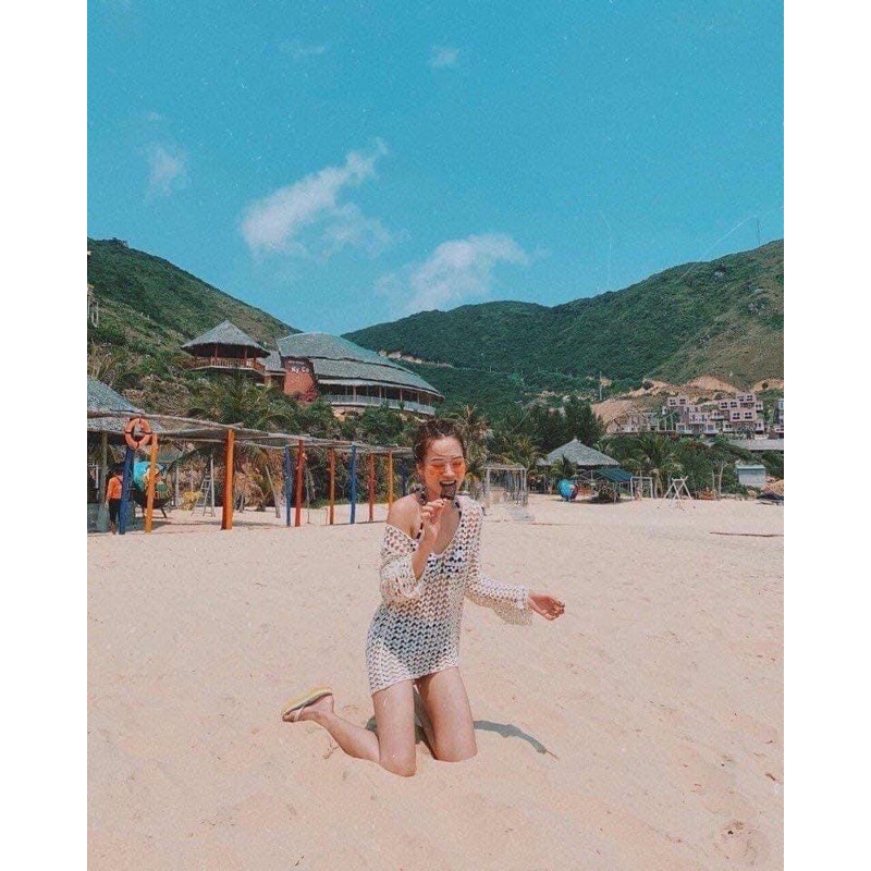 Thời Trang Nữ > Áo > Khác || Áo đi biển nữ lưới cổ trái tim