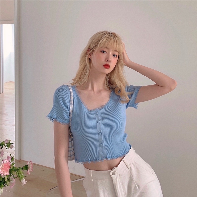 Giới thiệu Áo Gân Viền Ren Phối Nút Phong Cách Nữ Tính