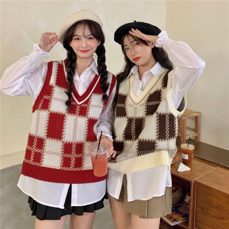 Áo gile dáng rộng họa tiết ô vuông mix đồ siêu xinh! Ulzzang Style🌻 Hàng quảng châu