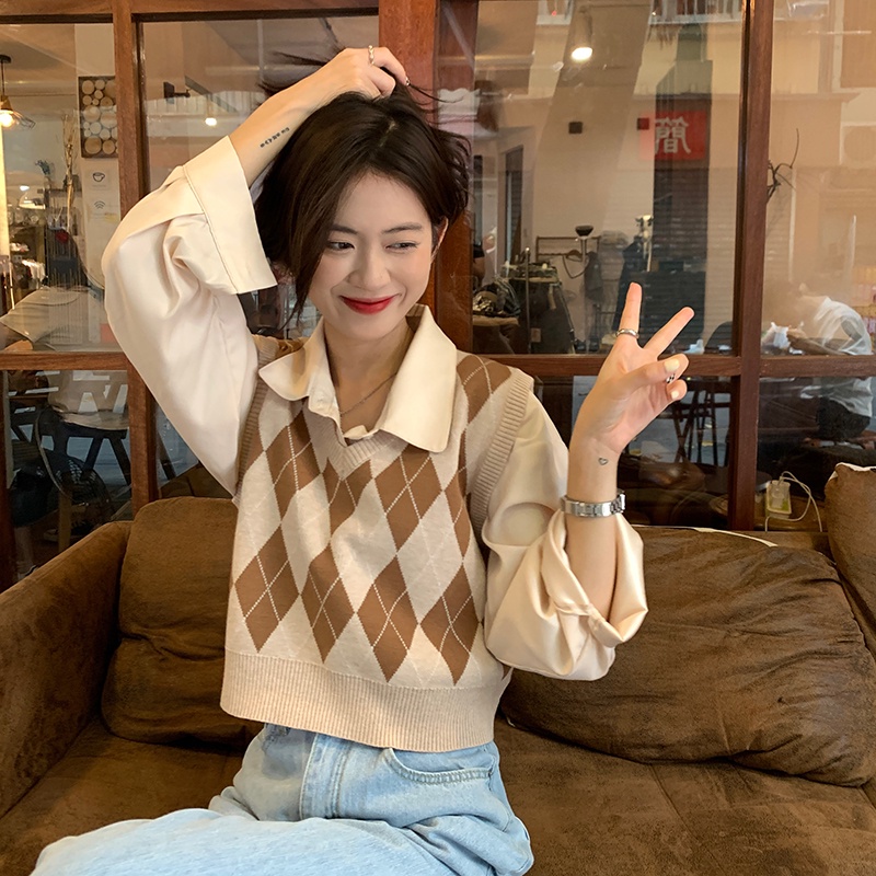 Sản phẩm: Áo ghi lê dáng lửng họa tiết quả trám Hàn Quốc