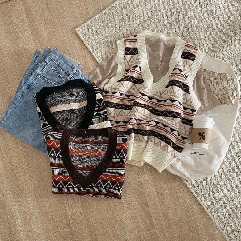 Thời Trang Nữ > Áo > Khác || Áo Gile nữ hoạ tiết zikzak phong cách Hàn Quốc