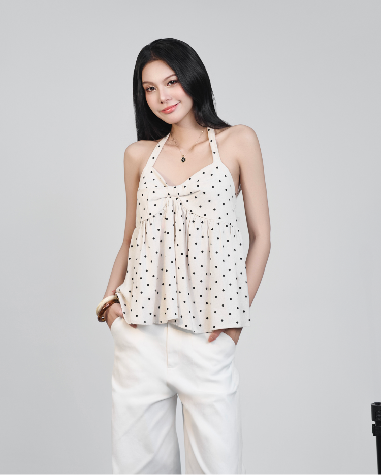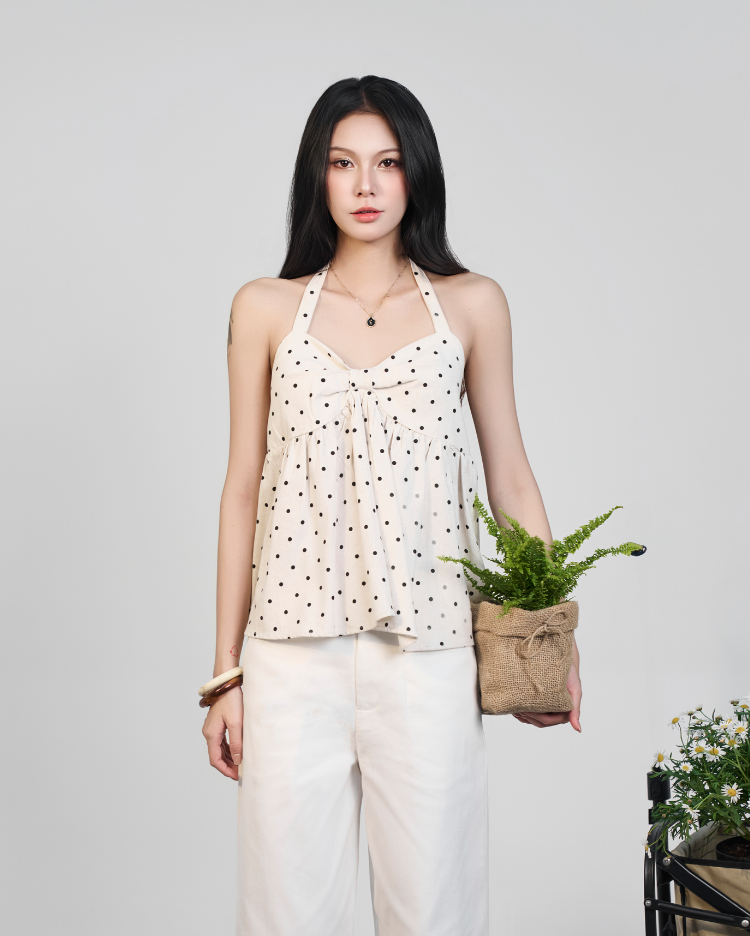 ✿ Sản phẩm : Áo hai dây chấm bi nơ ngực tôn dáng sáng da Yue Miều Est.2013
