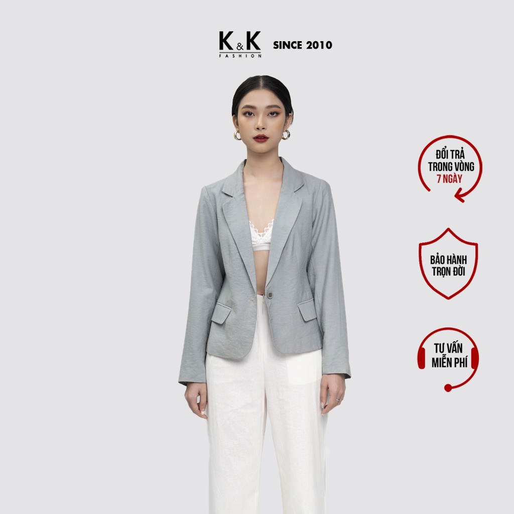 Giới thiệu Áo Khoác Blazer 2 Lớp Túi Đắp K&K Fashion AK10-15 Màu Xanh Tay Dài Chất Liệu Đũi