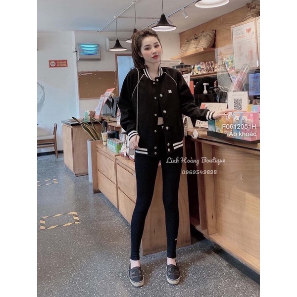 Giới thiệu Áo khoác bomber khuy bấm lưng in chữ celinev tay dài bo viền!