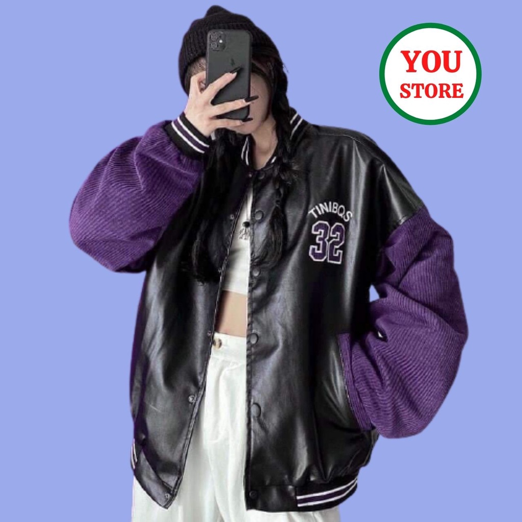 Giới thiệu Áo Khoác Bomber Nam Nữ Chất Liệu Da Phối Tay Nhung In Số 32 Mã 163 You Store