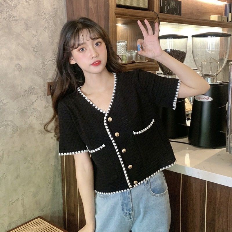 Thời Trang Nữ > Áo > Áo thun || Áo khoác cardigan thun len cổ tim phong cách hàn quốc 2021