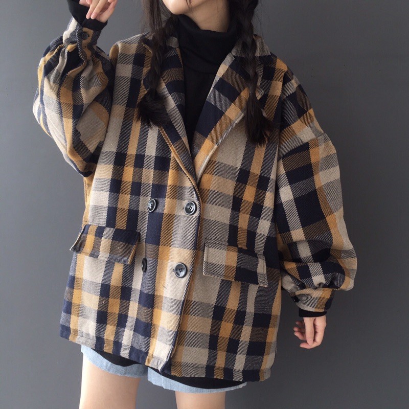 Thời Trang Nữ > Áo khoác > Áo khoác mùa đông || Áo khoác dạ caro vàng