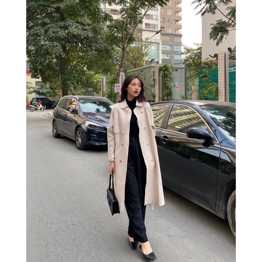 Áo khoác dạ ép cổ bẻ kèm đai A2166 SUSTORE