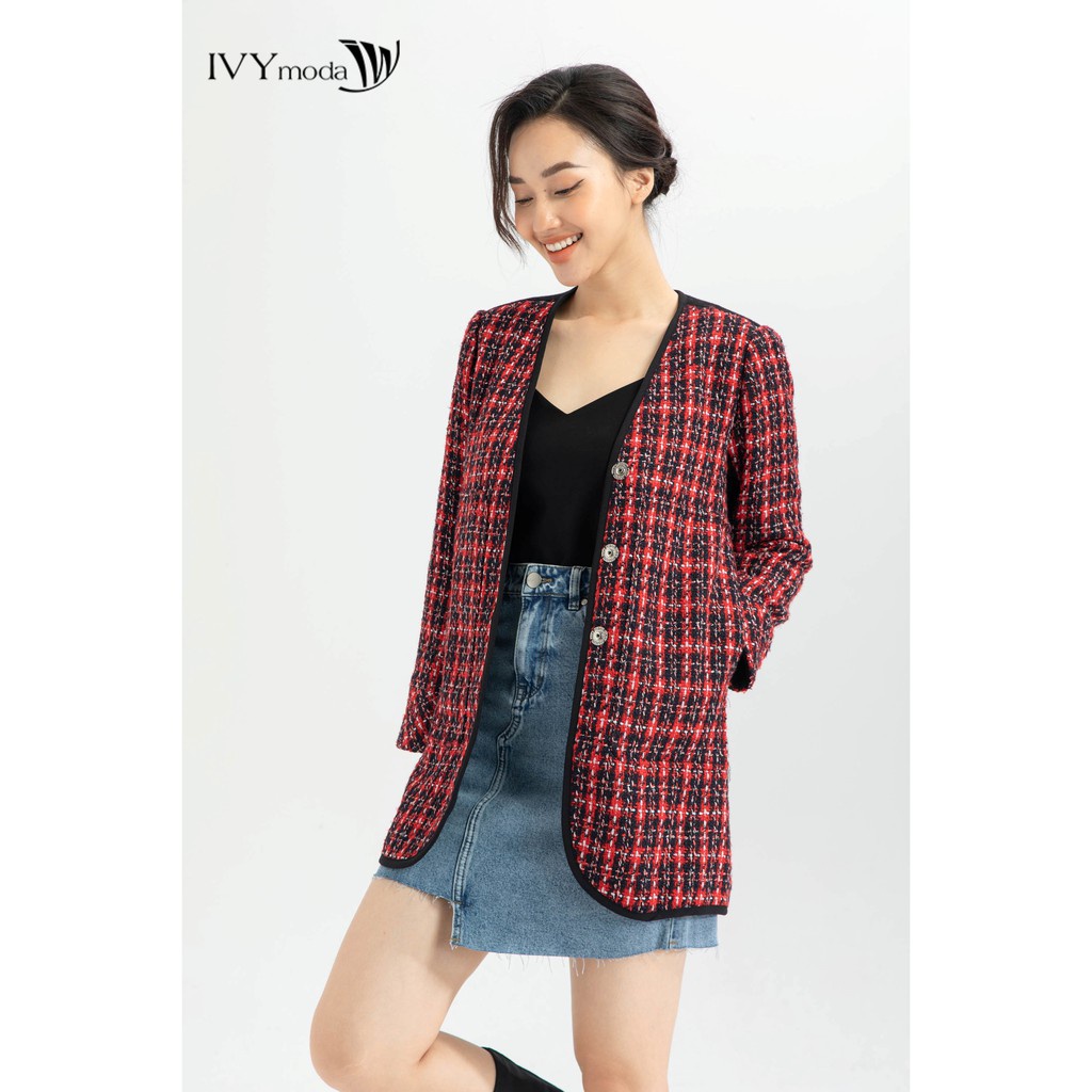 Giới thiệu [NHẬP WABRTL5 GIẢM 10% TỐI ĐA 50K ĐH 250K ]Áo khoác dạ nữ họa tiết kẻ IVY moda MS 70M4088
