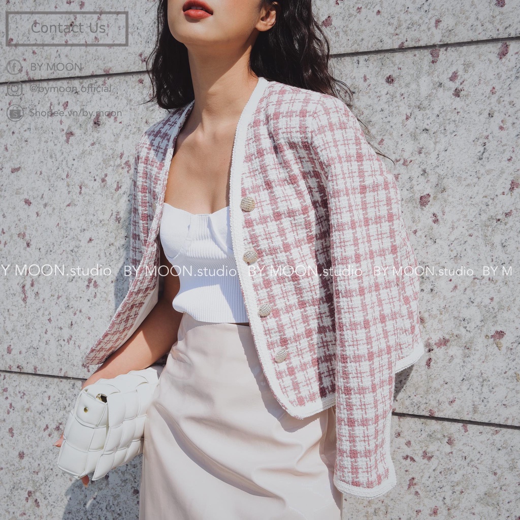 Giới thiệu Áo khoác dạ Tweed nữ hồng thời trang thiết kế ảnh thật BY MOON AK005
