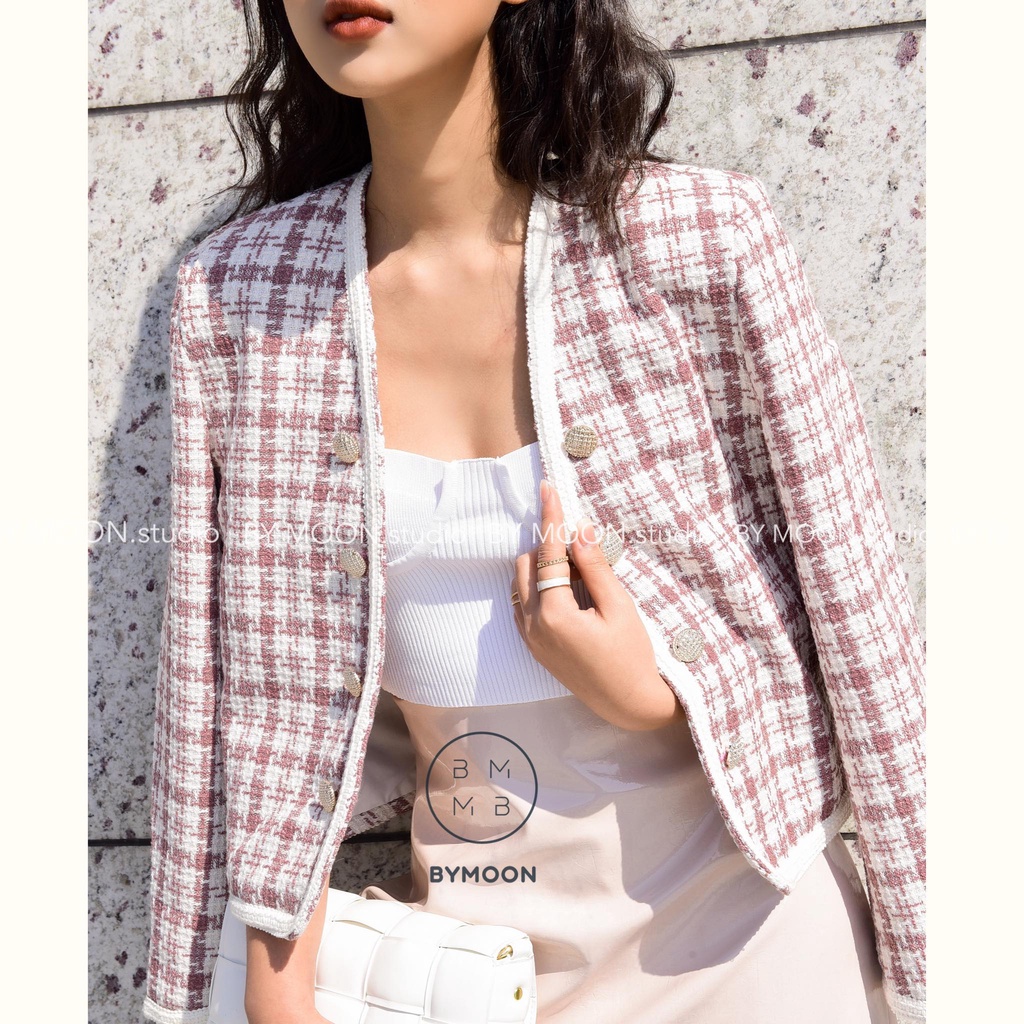 Áo khoác dạ Tweed nữ hồng thời trang thiết kế ảnh thật BY MOON AK005