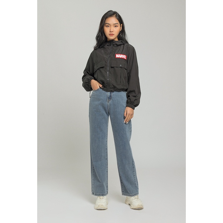 Áo khoác gió dáng Crop, thêu patch Marvel trước ngực