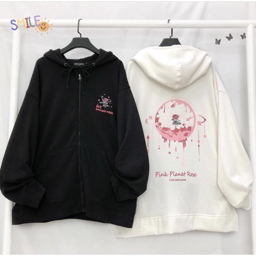 Giới thiệu Áo khoác Hoodie dây kéo PLANET ROSE form rộng ulzzang Unisex + ẢNH THẬT